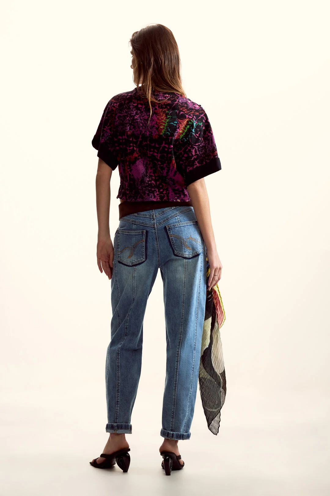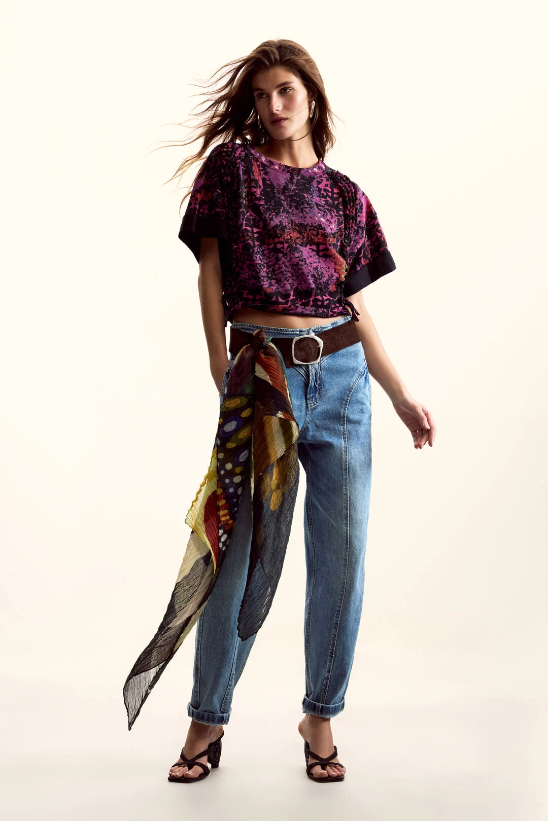 Κοντομάνικο μπλουζάκι με πλαϊνά δεσίματα, στάμπα σχεδιασμένη από τον Mr. Christian Lacroix και λεπτομέρειες σε χρωματική αντίθεση.