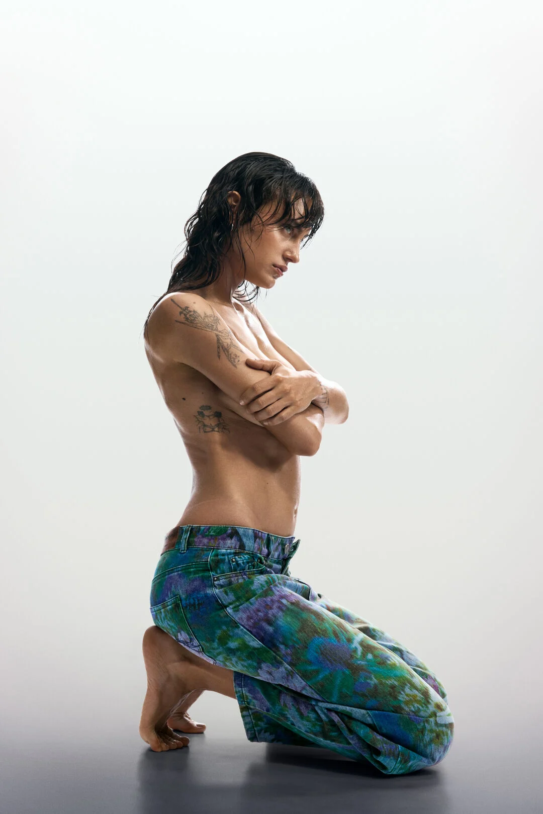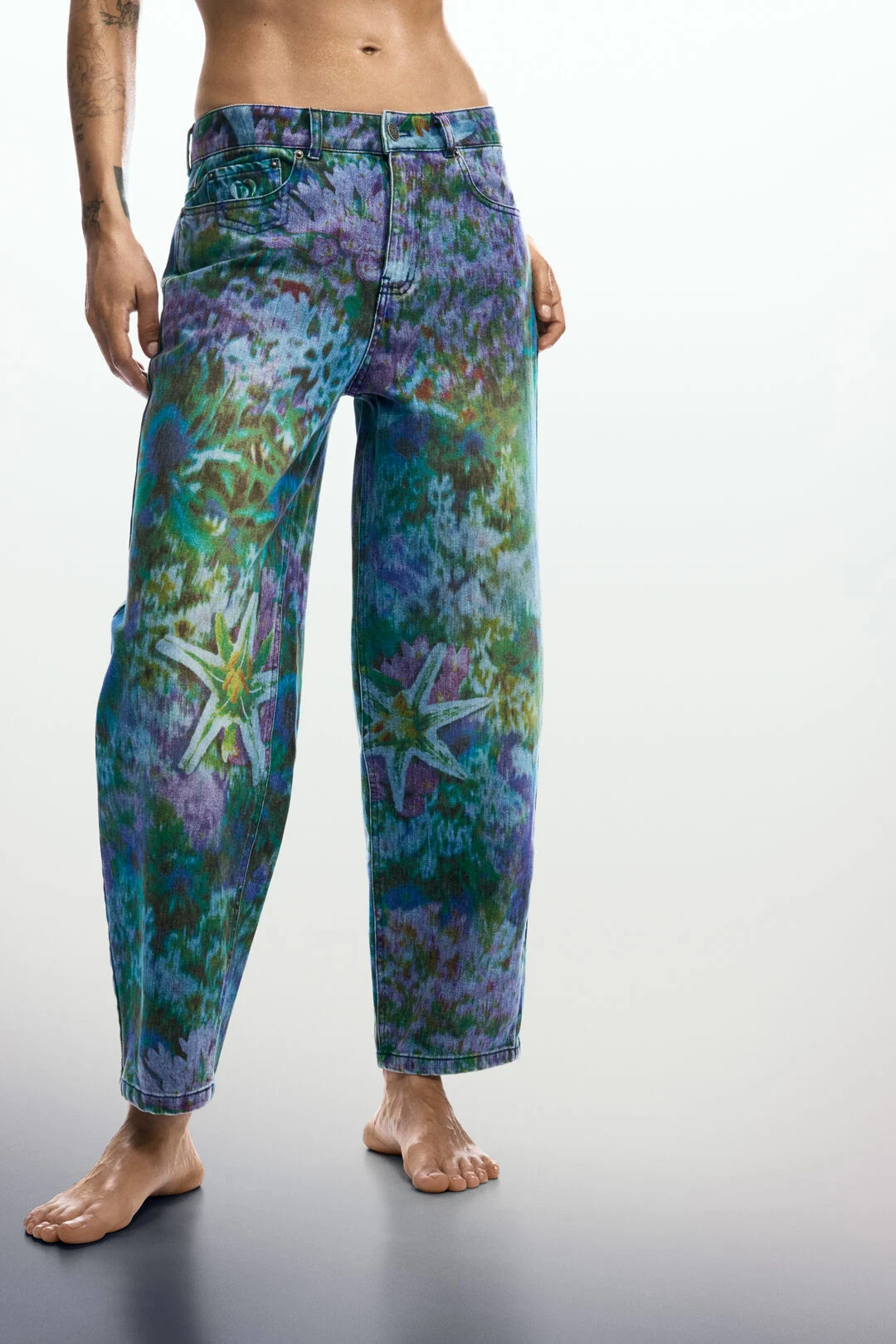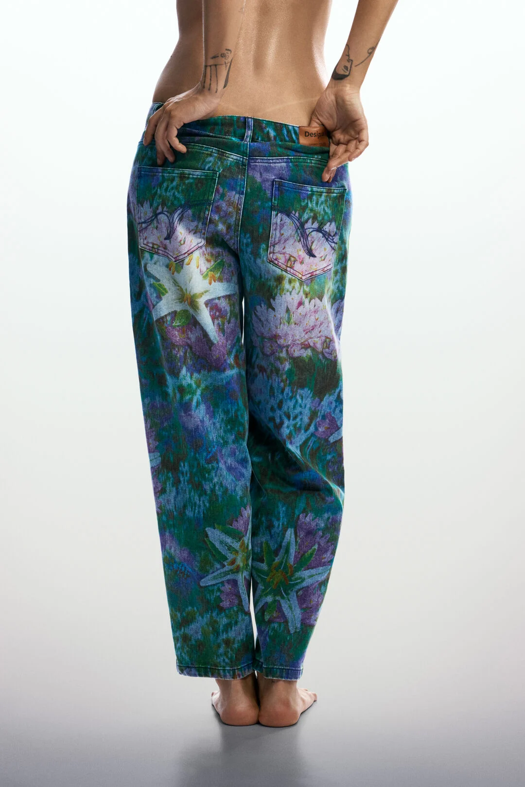 Παντελόνι σε baggy γραμμή με ανάγλυφο λογότυπο στην μπροστινή τσέπη και στάμπα με λουλούδια εμπνευσμένη από άγριο κήπο