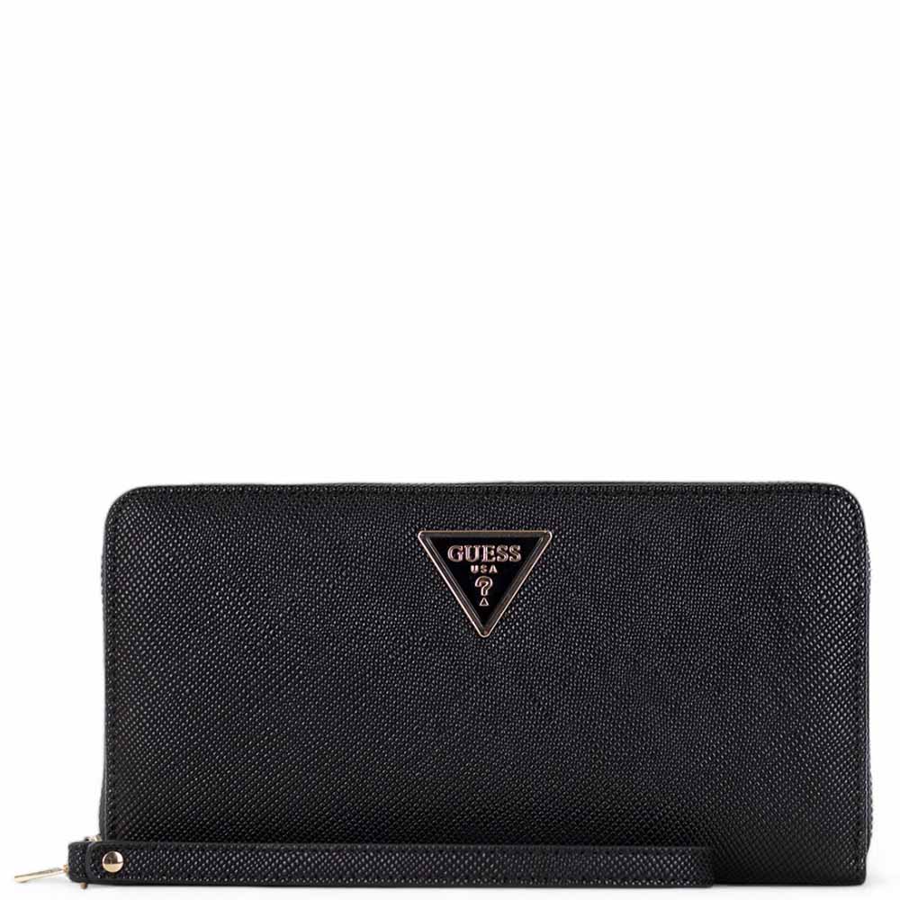 Μαύρο πορτοφόλι με φερμουάρ και αφαιρούμενο βραχιολάκι