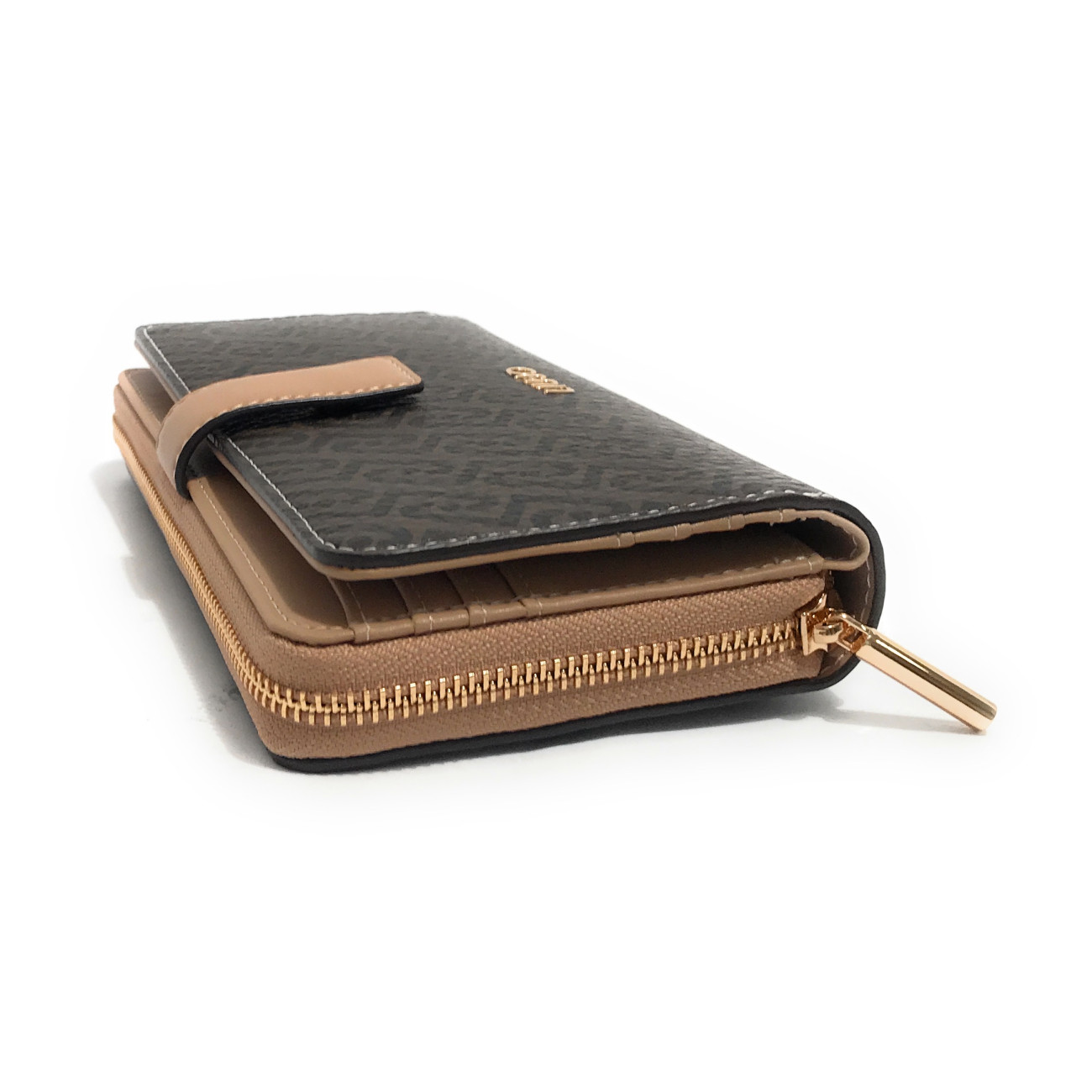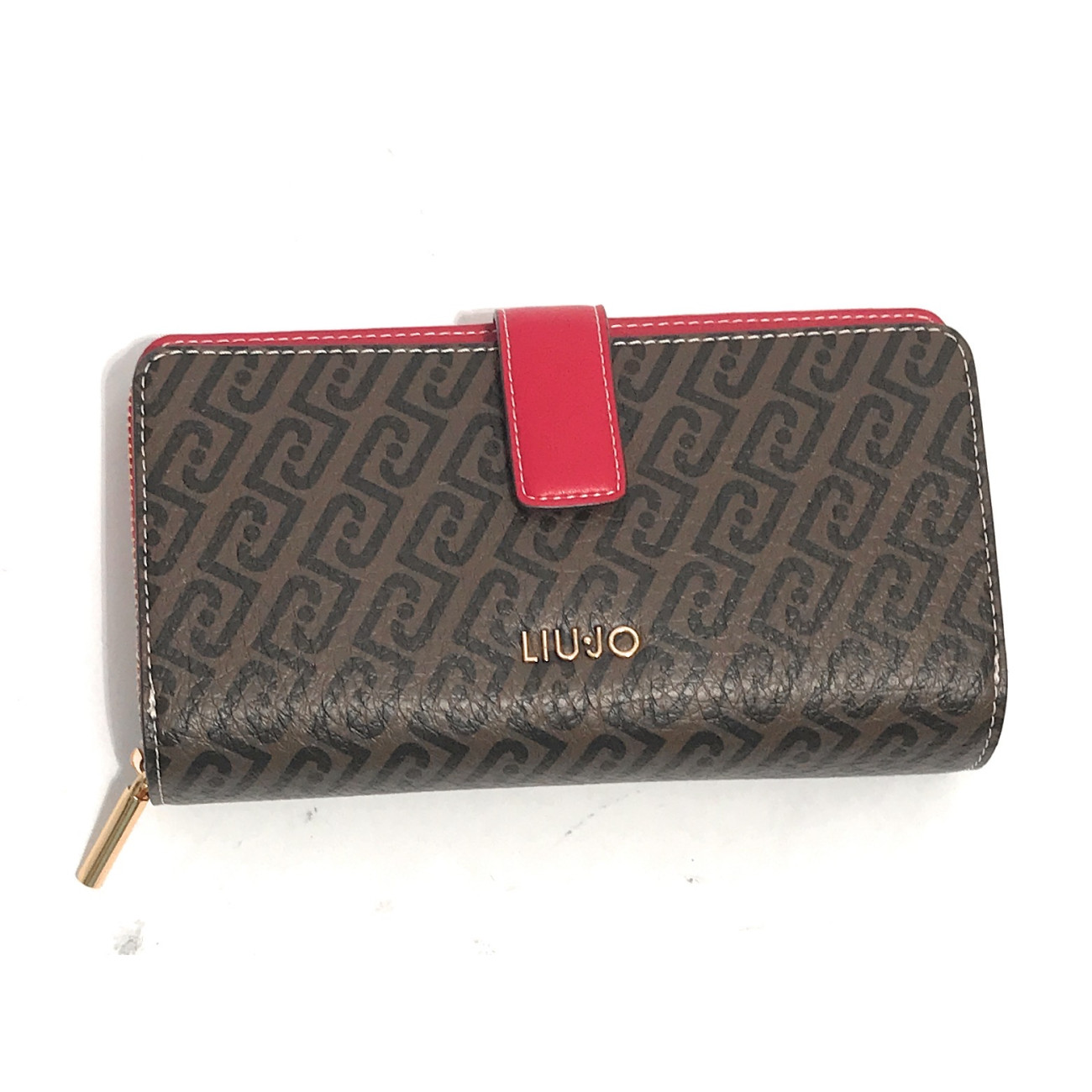 Πορτοφόλι LIU JO σε καφέ-μπεζ και καφέ-κόκκινο χρώμα με τύπωμα λογότυπου σε όλη την επιφάνεια